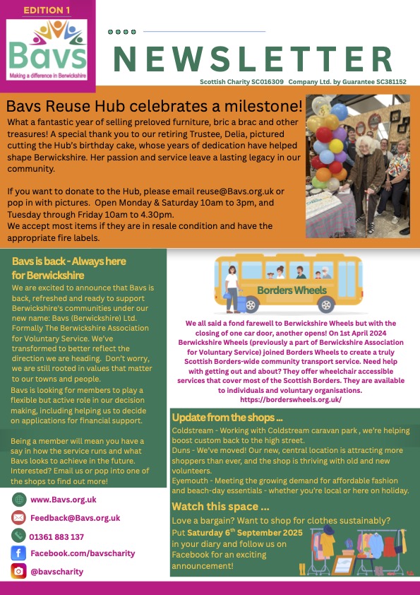 BAVS has published its first Newsletter since the charity rebranded following the creation of the TSI, Borders Community Action. Click here to find out more .